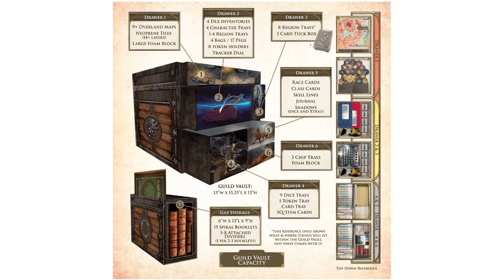 Oltre a poter conservare tutti i contenuti presenti e futuri, introduce delle soluzioni di facilitazione del setup del gioco, come i portamappe magnetici per le 8 regioni e i nuovi vassoi per conservare i personaggi, ancora più pratici e funzionali.