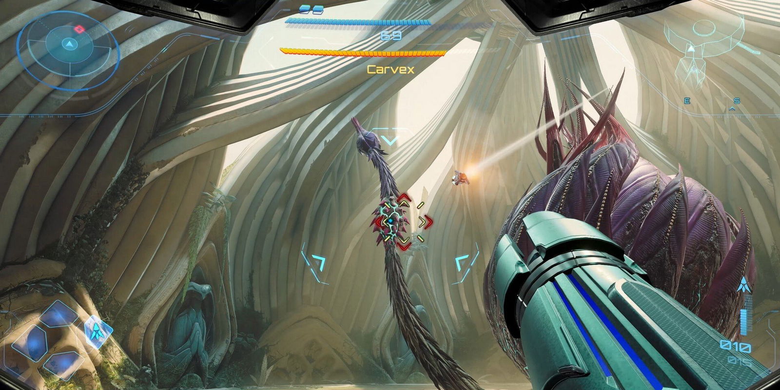 Anche i puzzle ambientali che abbiamo incontrato erano intelligenti nella loro semplicità, richiedendo un uso attento dello Scan Visor e delle prime abilità di Samus. Oltretutto, la boss fight che ha concluso la nostra prova, pur non essendo nulla di particolarmente originale (un grosso "petalo" corazzato che richiedeva di distruggere simultaneamente alcuni suoi punti deboli), si è rivelata tesa e divertente, un classico "puzzle con le pistole" in puro stile Prime.