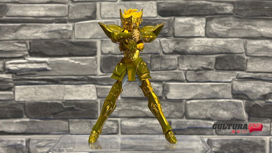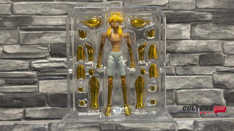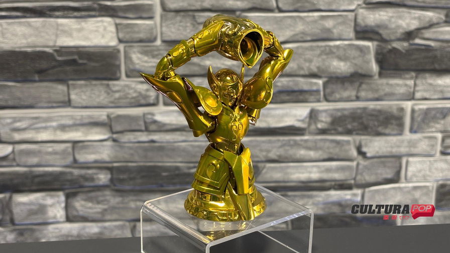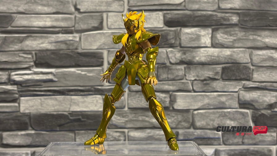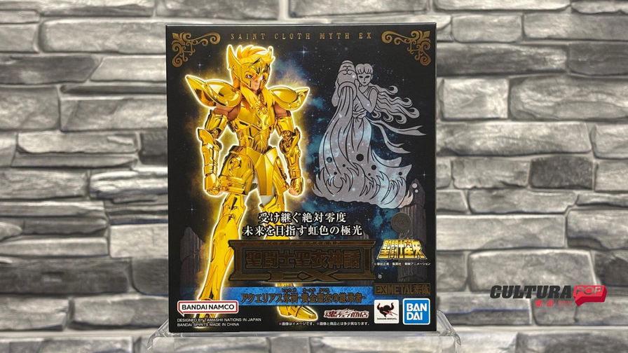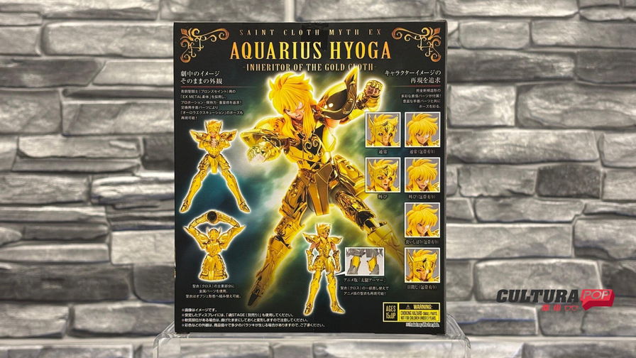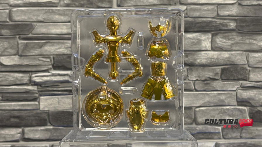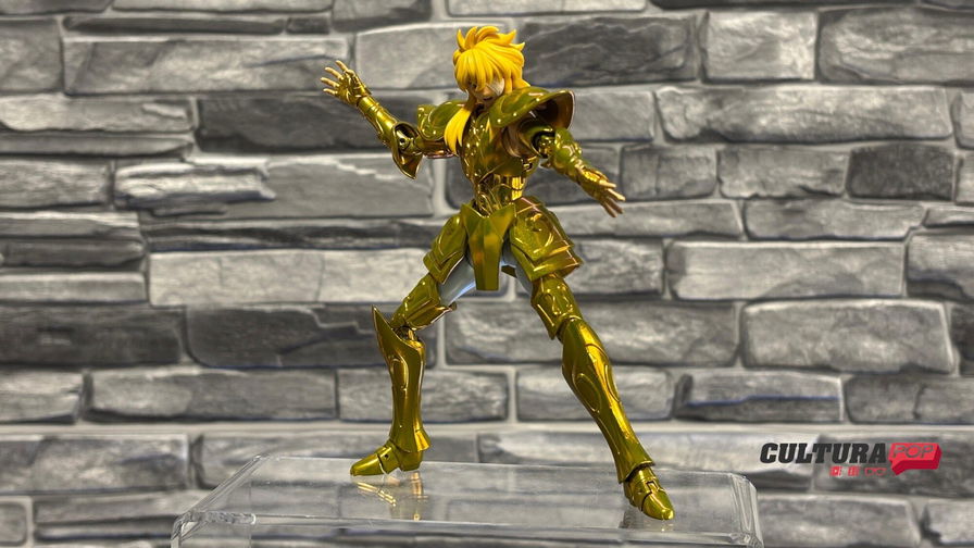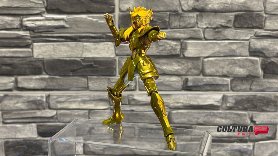 Dal punto di vista estetico, la Gold Cloth dell’Acquario si distingue per linee eleganti e proporzioni perfette, riproducendo fedelmente l’armatura vista nell’anime Saint Seiya durante la saga di Hades: Elisio. La brillante finitura dorata, tipica della linea EX Metal, esalta ogni riflesso e mette in risalto i dettagli del molding, donando alla figure una presenza scenica notevole anche in posizione neutra.