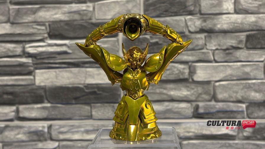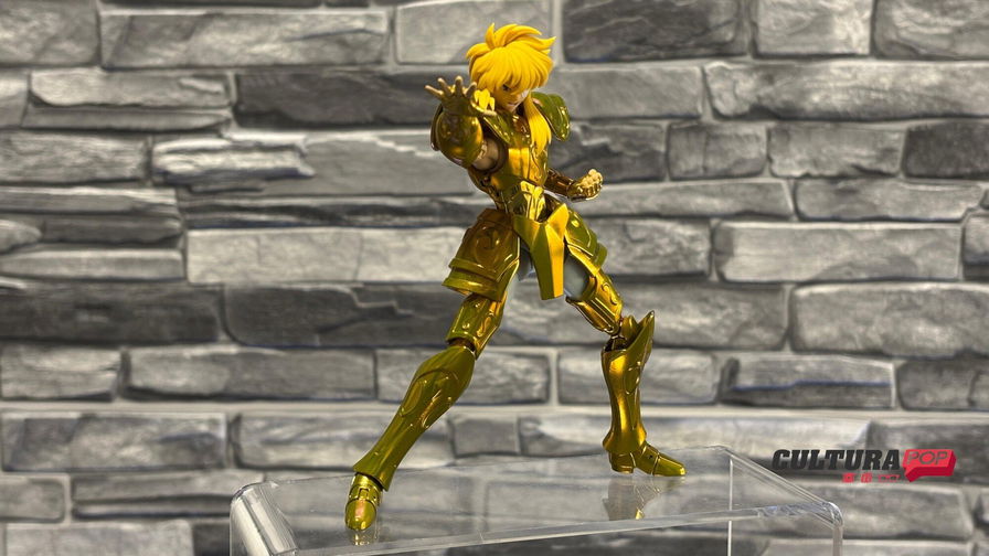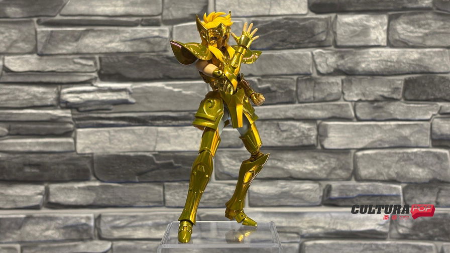 Dalla confezione fino al montaggio, ogni dettaglio comunica cura e rispetto per il materiale originale. Il packaging è elegante e celebrativo, il blister ordinato e funzionale, il totem un autentico tributo alla costellazione dell’Acquario. Ma è una volta completato il montaggio che la figure mostra il suo vero potenziale: l’armatura in metallo dona peso, solidità e brillantezza, mentre il sistema articolare avanzato consente pose estremamente dinamiche senza compromettere la stabilità complessiva.