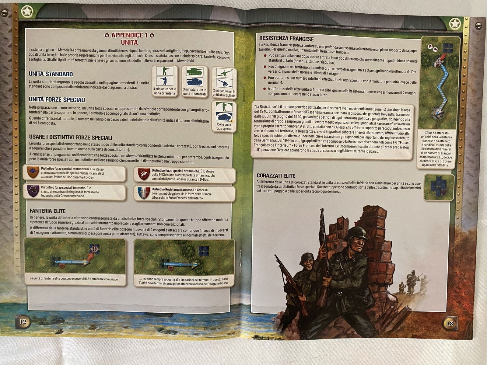 Il regolamento di Memoir ’44 (Refresh) è un modello di chiarezza. Pur affrontando un tema complesso e una meccanica piuttosto ricca, il manuale guida il lettore passo dopo passo, alternando spiegazioni tecniche a esempi visivi e note storiche.