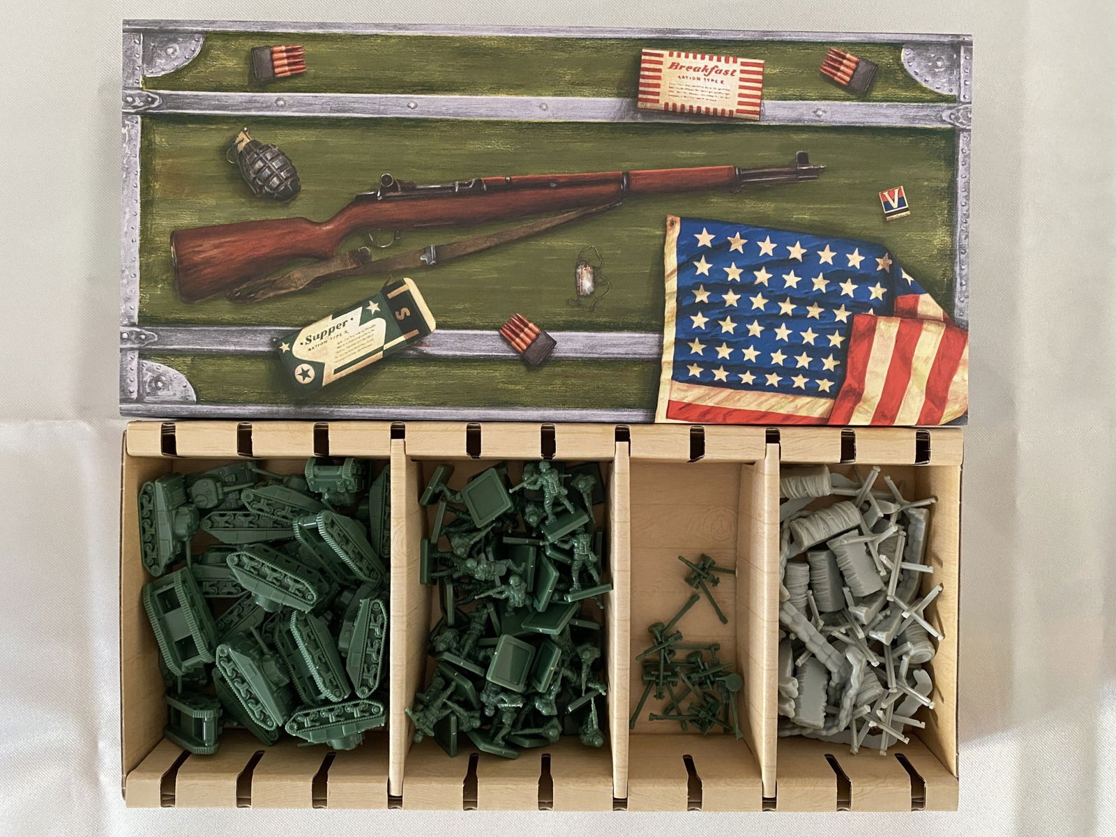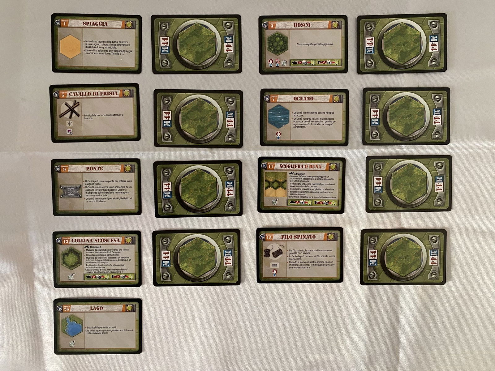 I 44 esagoni terreno a doppia faccia, rappresentanti città, boschi, colline, fiumi e spiagge sono chiari e solidi, mentre i dadi personalizzati, i segnalini comando, le medaglie vittoria e i distintivi forze speciali contribuiscono all'immersione nell'ambientazione.