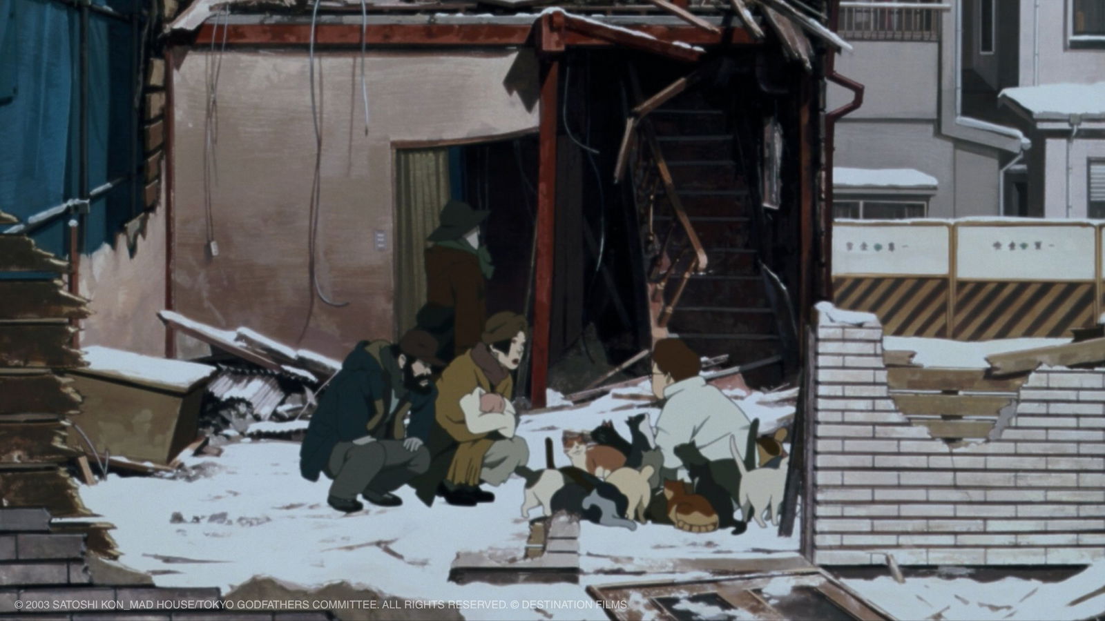 Kon e la sceneggiatrice Keiko Nobumoto (già autrice di Cowboy Bebop) riprendono quella premessa, ma la trapiantano nella Tokyo del nuovo millennio, trasformando i “tre padrini” in tre senzatetto: Gin, un ex ciclista alcolizzato e disilluso;