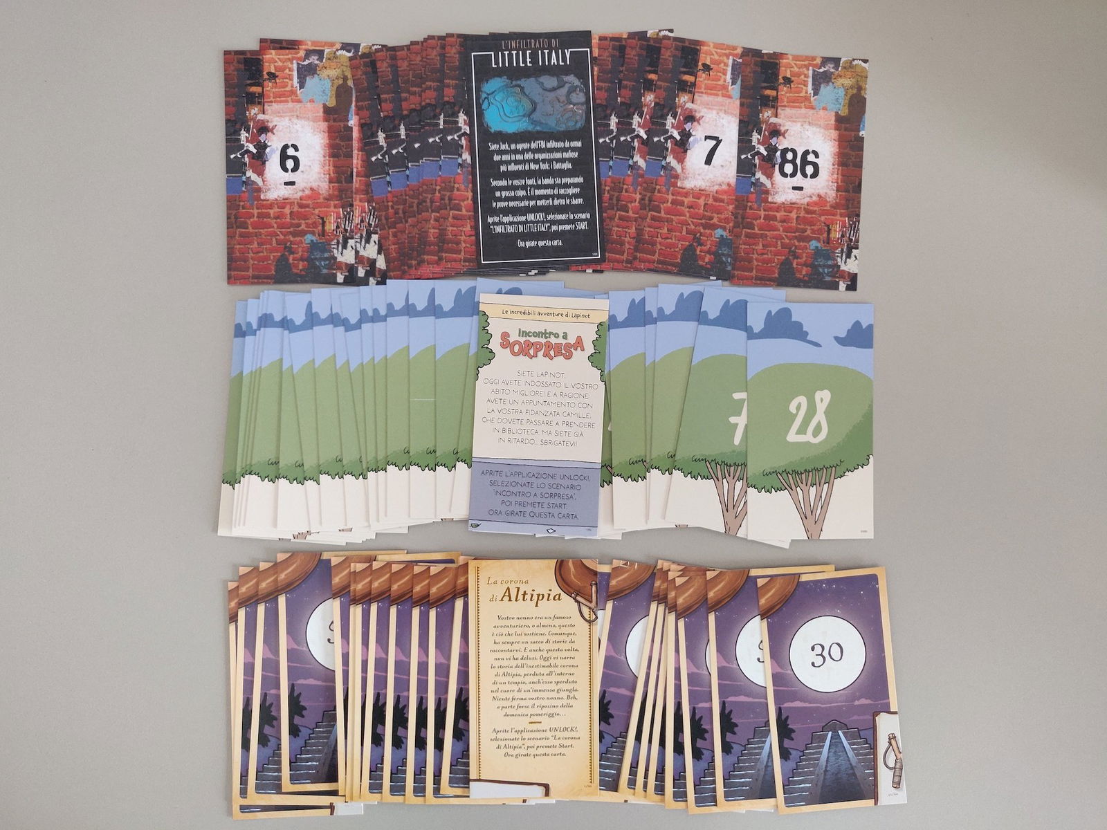 Una menzione speciale va sicuramente al comparto grafico: La Corona di Altipia è illustrata da Cyrille Bertin, autore francese di grandissimo talento già collaboratore storico della linea Unlock. Incontro a sorpresa è stato curato da Lewis Trondheim, che ha vinto il Grand Prix ad Angouleme nel 2006. Infine L’Infiltrato di Little Italy presenta le bellissime illustrazioni di Pierô, fumettista e autore specializzato nel campo dei giochi (fra i titoli più famosi ricordiamo Dixit Odyssey).
