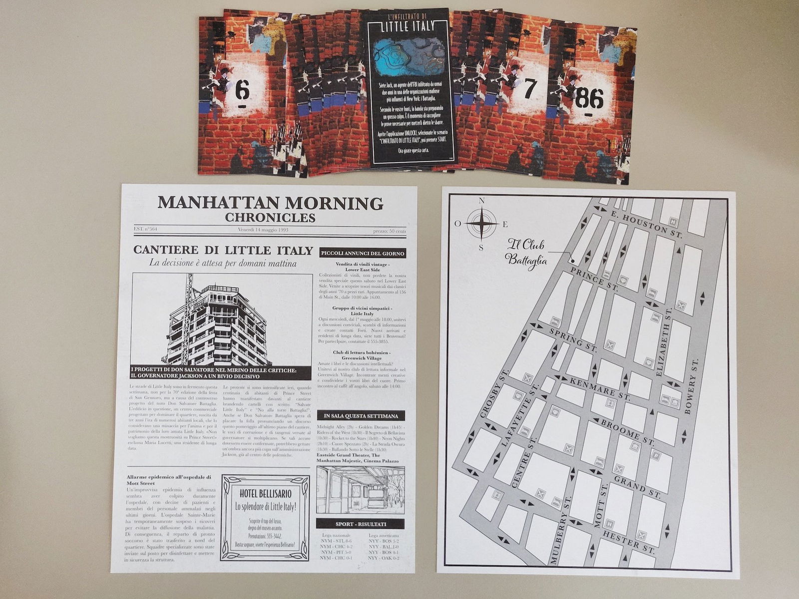 L’ultimo scenario, il più complesso di Risky Adventures, presenta fin da subito una marcata originalità, in quanto permette di muoversi in auto nell’ambientazione attraverso l’uso di una mappa cartacea e dell’App. Viene eliminato anche l’uso dei codici, tipici delle avventure Unlock. La difficoltà degli enigmi è sicuramente più elevata e l’uso di elementi fisici (mappa della città, copia del giornale) obbligano a ragionamenti più complessi che danno molta soddisfazione quando portano alla risoluzione degli enigmi. Un paio di passaggi sono forse un po’ più forzati, ma va tenuto presente che come scenario di difficoltà alta è necessario molto spesso pensare “out-of-the-box” (o forse “in-the-box”).