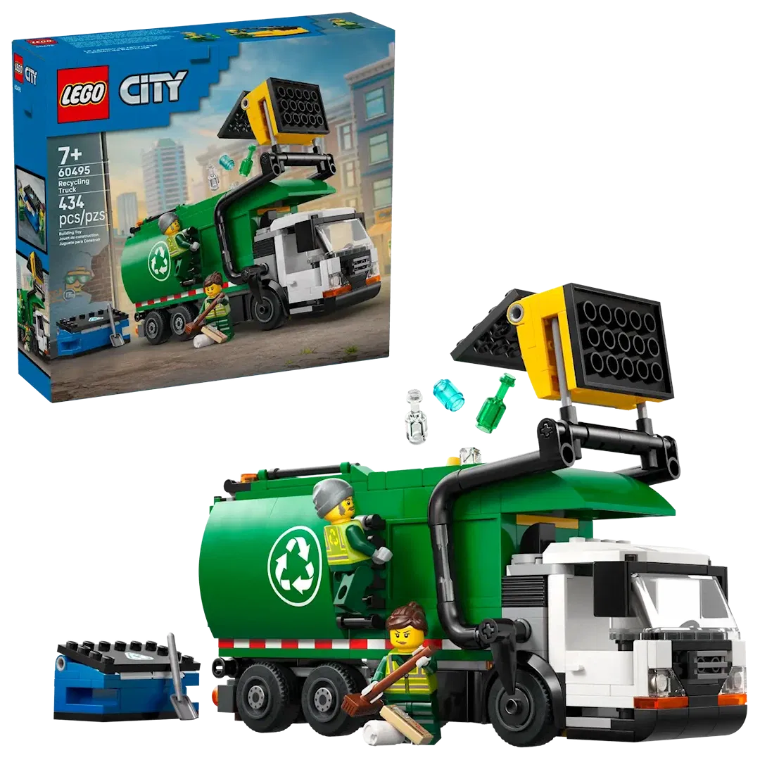LEGO City guarda anche all'ordine e alla pulizia con la nuova versione del camion della nettezza urbana. Il nuovo modello di camion elettrico da 434 pezzi è dotato di un divisorio per smistare gli elementi vetro e carta LEGO, oltre a supporti per gli attrezzi e una cabina di guida in grado di ospitare le due minifigure dell'equipaggio. Un meccanismo a leva permette di sollevare e svuotare i 2 cassonetti nel camion e sollevare il cassone per scaricare i rifiuti attraverso uno dei 2 portelli posteriori.