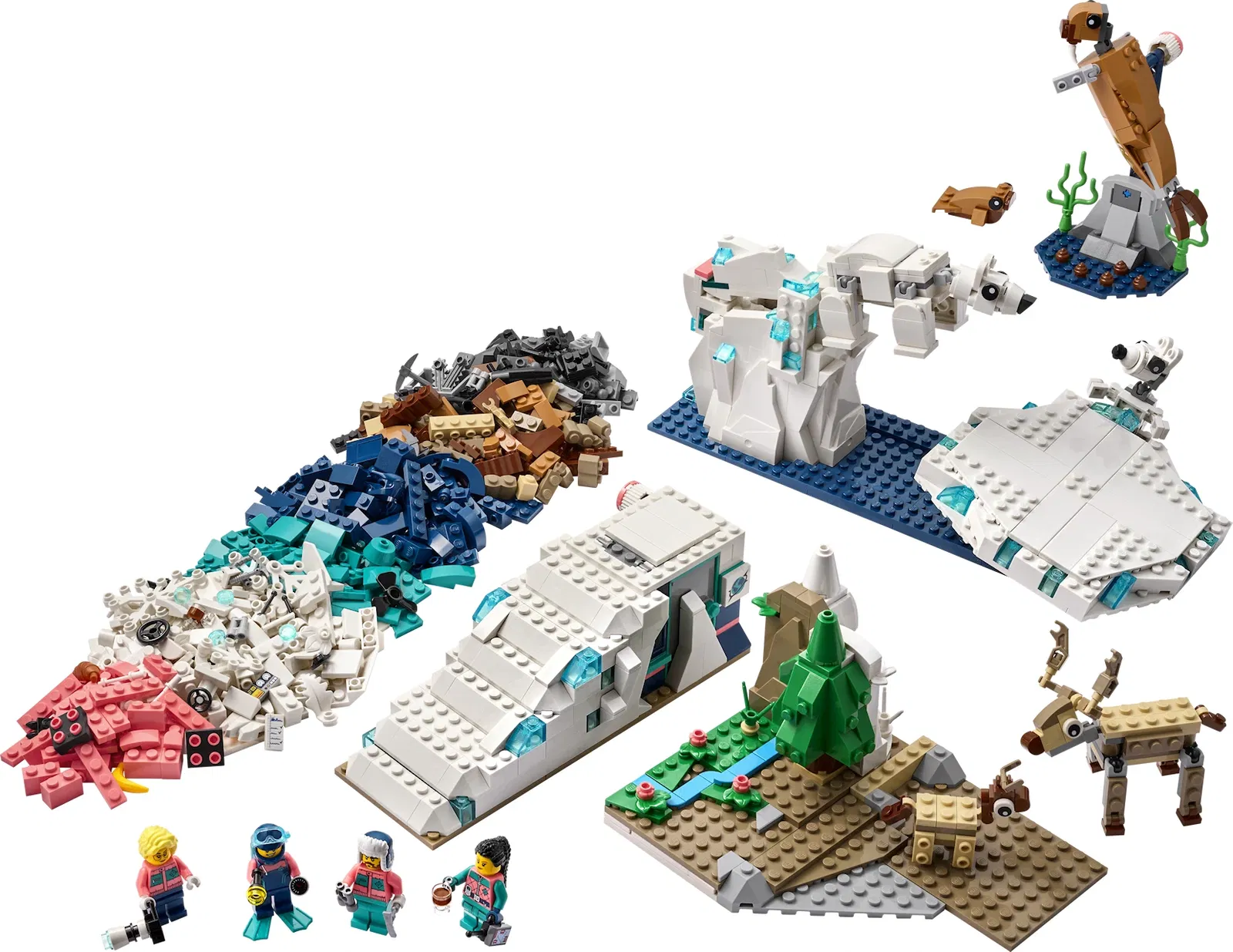 Gli altri due kit portano invece i giovani esploratori nei territori ghiacciati del pianeta. "Animali dell'Antartide" (45201) è pensato per bambini dai 7 anni e comprende 461 pezzi per ricreare l'habitat di pinguini e altre specie polari, mentre "Animali dell'Artico" (45203) rappresenta l'offerta più completa con 1.134 elementi dedicati all'ecosistema del Polo Nord. Entrambi permettono di esplorare concetti di biologia, adattamento ambientale e cicli naturali attraverso la costruzione e il gioco.