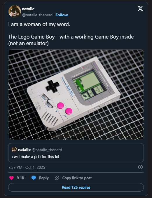 Quello che rende davvero speciale questa modifica è l'approccio utilizzato da Natalie. Non si tratta di un semplice emulatore nascosto dietro una facciata di mattoncini LEGO, ma di un Game Boy genuino con tutti i chip originali montati su una scheda madre personalizzata. La console modificata accetta le cartucce originali del Game Boy, garantendo un'esperienza di gioco identica a quella delle console Nintendo degli anni '80.