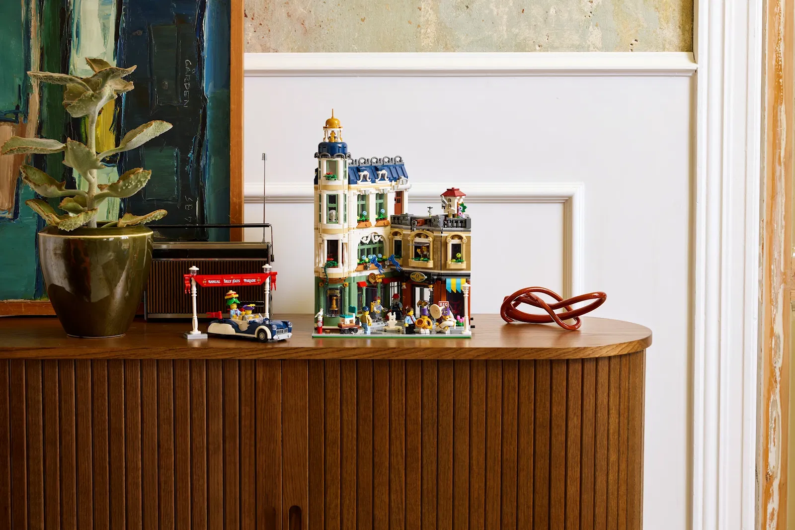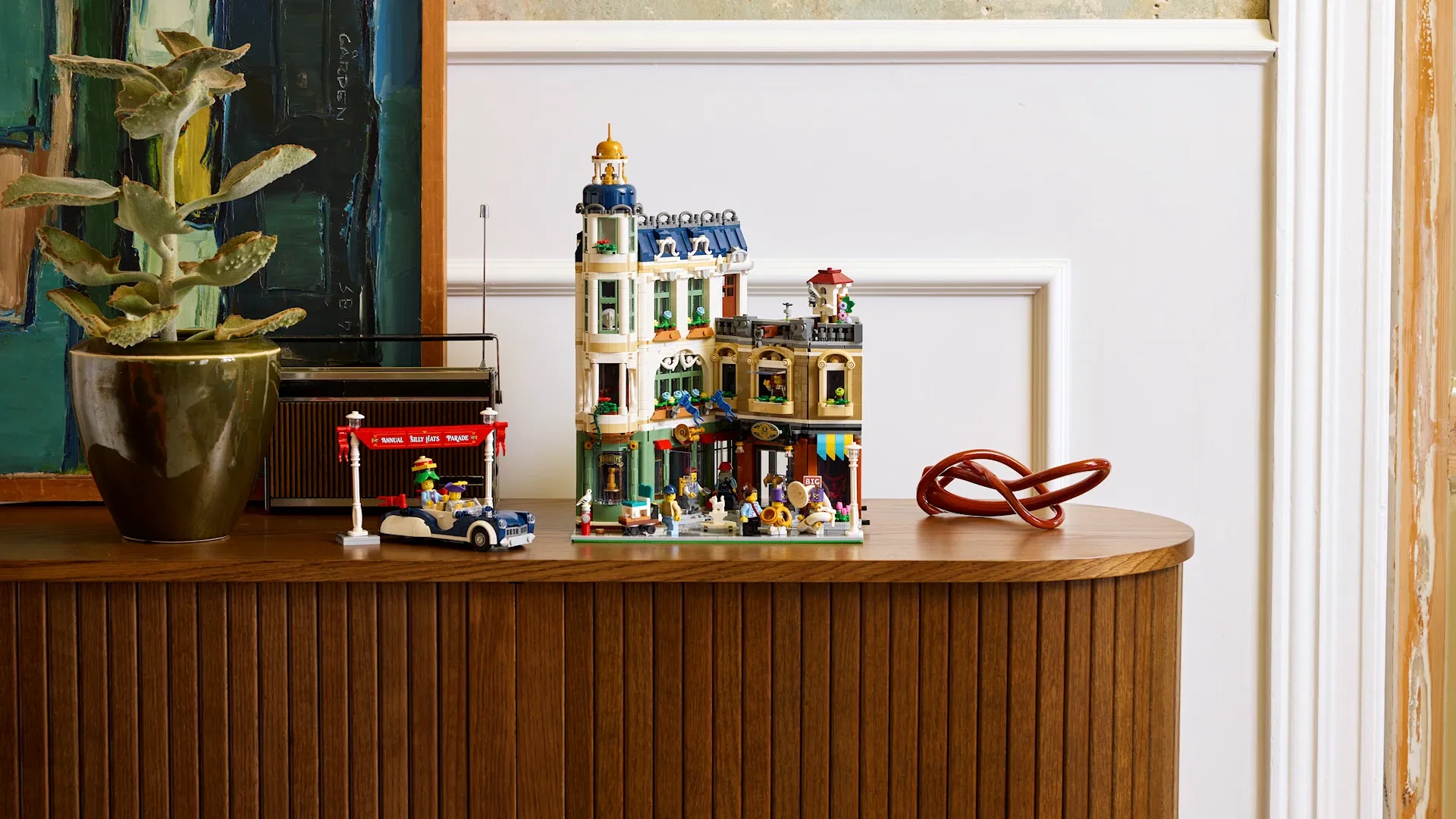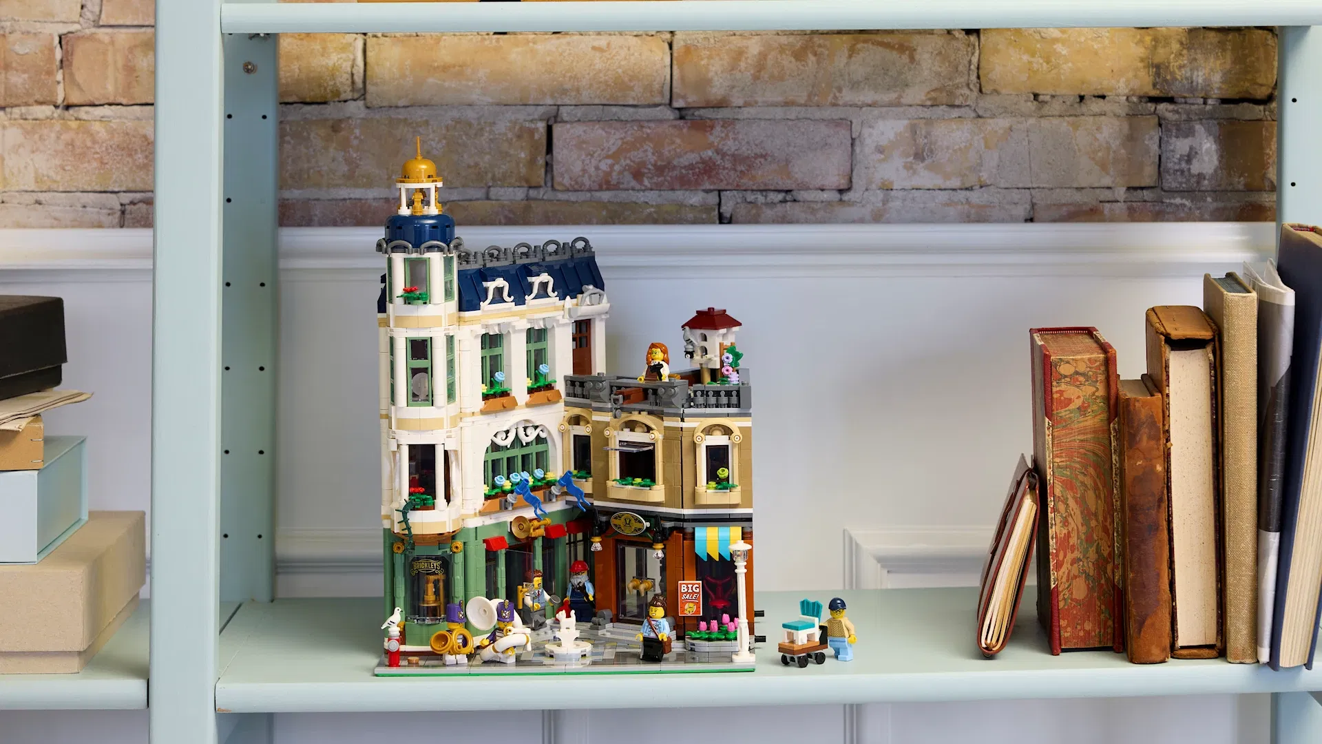 Il set include sette minifigure che raccontano piccole storie quotidiane. Tra queste spiccano due gemelli intenti a visitare il negozio di musica per acquistare strumenti per la loro banda musicale. Un dettaglio affascinante si nasconde nei loro cappelli: lo stemma di Billund, la cittadina danese che ha dato i natali al Gruppo LEGO, un omaggio discreto ma significativo alle origini del brand.