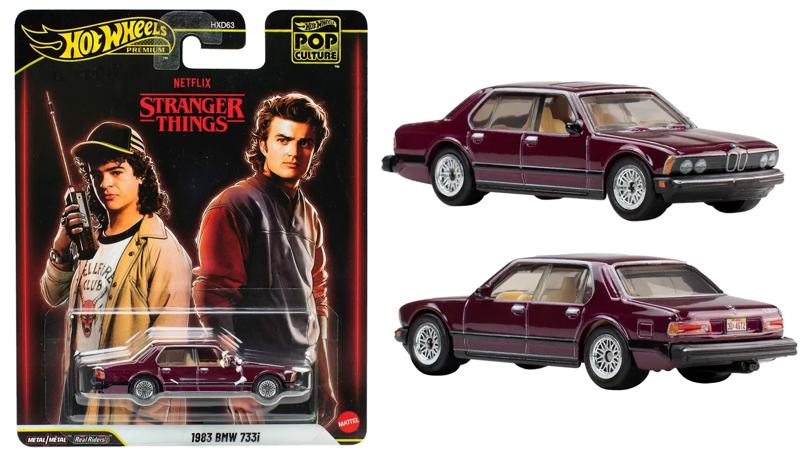 Parallelamente all'universo dei mattoncini, altri giganti del settore giocattoli hanno voluto la loro fetta di Hawkins. Mattel Creations ha scelto di celebrare la serie attraverso la sua prestigiosa linea Hot Wheels Premium Pop Culture, realizzando una replica in scala 1:64 della BMW 733i del 1983, l'automobile che nella serie viene guidata da Steve Harrington. Questo modellino rappresenta un approccio completamente diverso al collezionismo legato alla serie Netflix.