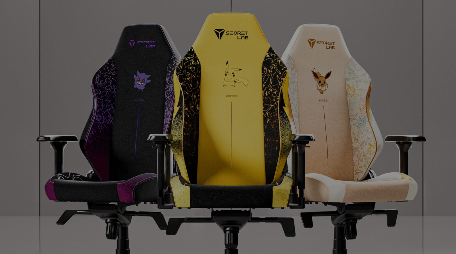 La collezione comprende tre modelli distinti: Pikachu, Gengar ed Eevee. Ogni sedia è stata progettata per rispecchiare le caratteristiche e la personalità del Pokémon che rappresenta. Pikachu, con la sua energia giocosa, porta una vivacità immediata nella stanza; Gengar, audace e misterioso, aggiunge un tocco di carattere; Eevee, versatile e affascinante, regala un equilibrio elegante tra funzionalità e stile.
